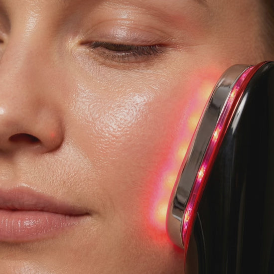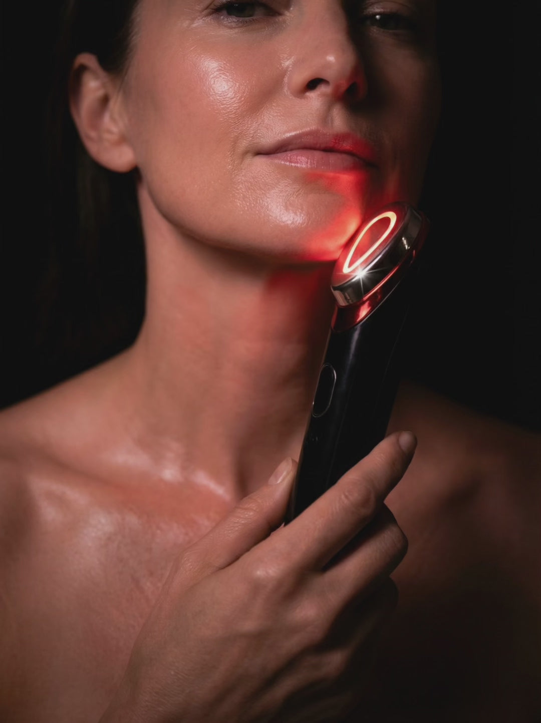 Red light (630nm) specifically stimulates fibroblasts, the cells responsible for producing collagen and elastin. More collagen = firmer, plumper skin with reduced fine lines.